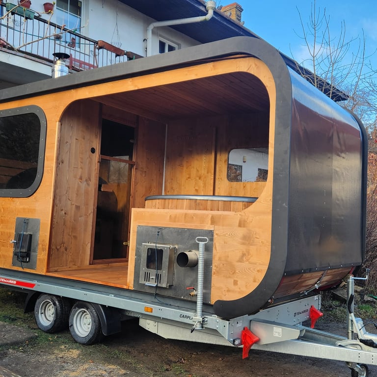 Autentiška medinė pirtis, įrengta ant priekabos – lengvai transportuojama į jūsų pasirinktą vietą